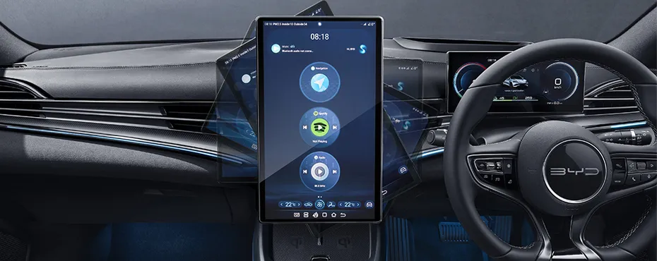 Konsol tengah dilengkapi dengan layar besar berukuran 15,6 inci yang dapat diputar, sehingga dapat diputar sesuai dengan konten halaman, memungkinkan pengguna untuk menikmati kehidupan cerdas dan menarik.